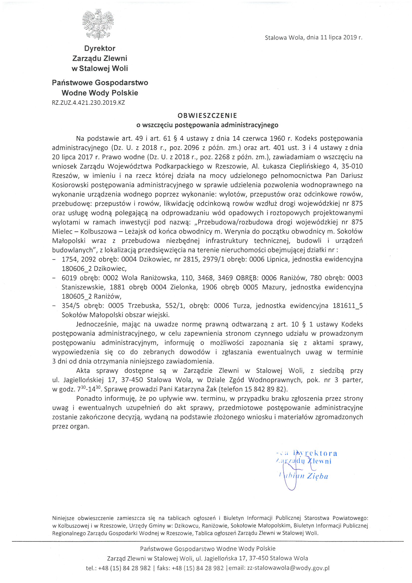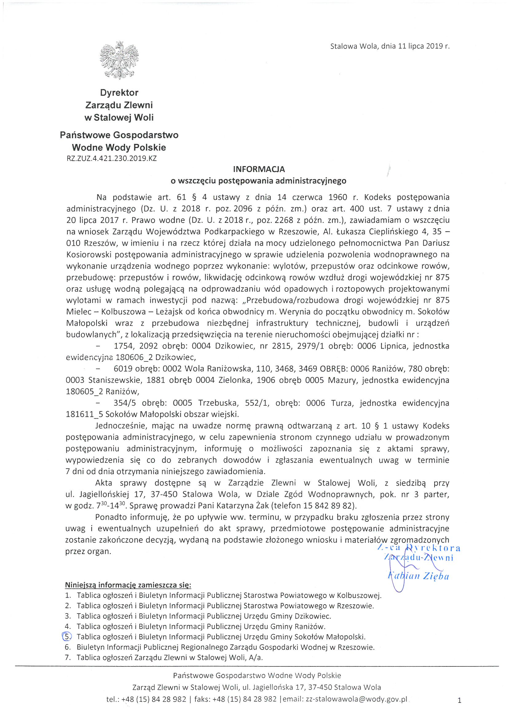 Informacja o wszczęciu postępowania administracyjnego